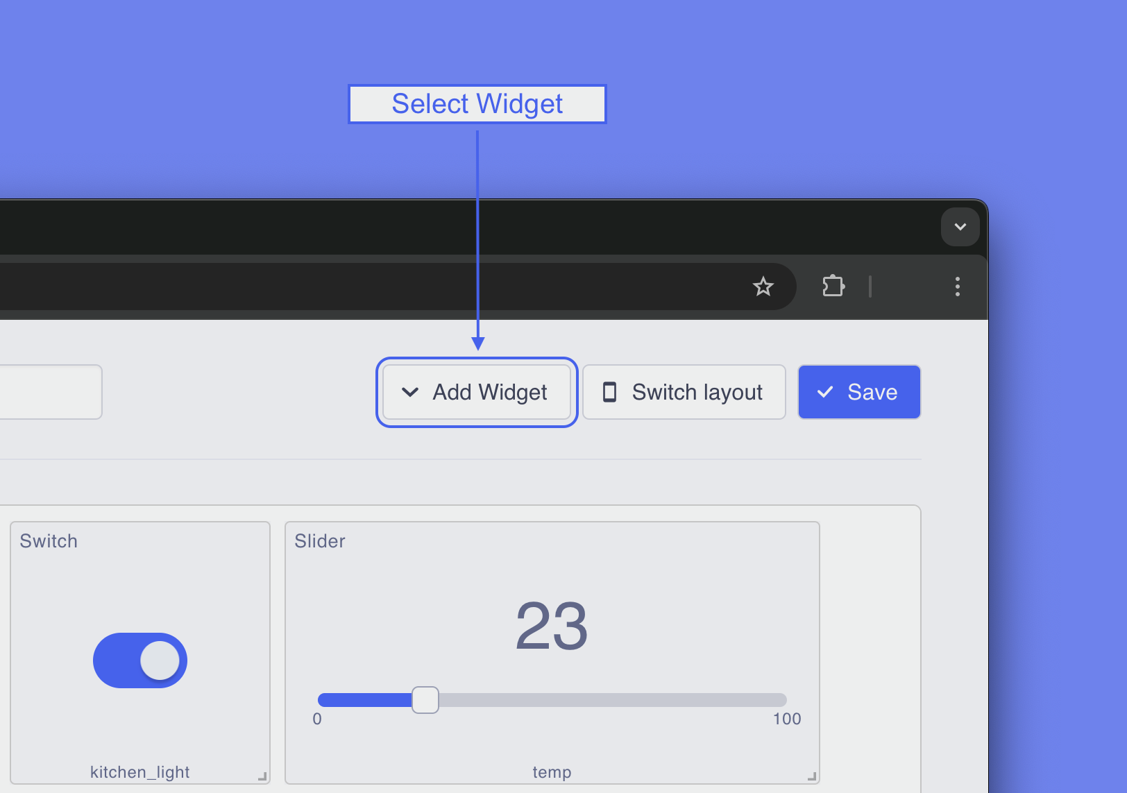 **Control Widgets** (Push Button, Switch, Slider):