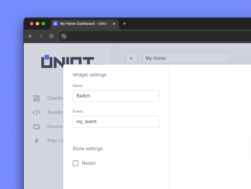 * **Retain parameter** - When enabled, the broker stores the last message and automatically sends it to devices that connect later. This ensures devices receive the most recent command even if they were offline. [Learn more about retained messages](https://docs.uniot.io/api/mqtt-convention#retained-messages).