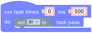 The main execution loop for your script. This block repeatedly executes the code inside it at a specified interval. Every script requires exactly one task block - it serves as your program's entry point and controls when your device logic runs.